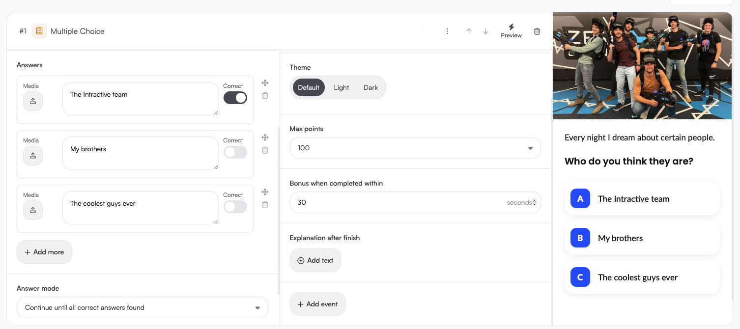 Let's test this scene by pressing Preview again. Try pressing the correct answer within 30 seconds, and you'll get some points 🏆: