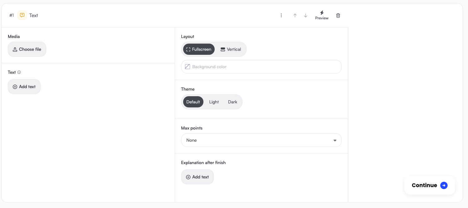 The middle column has options that are available for all your content blocks. You can for example award Points, or show an additional Explanation text after the user completes the content.