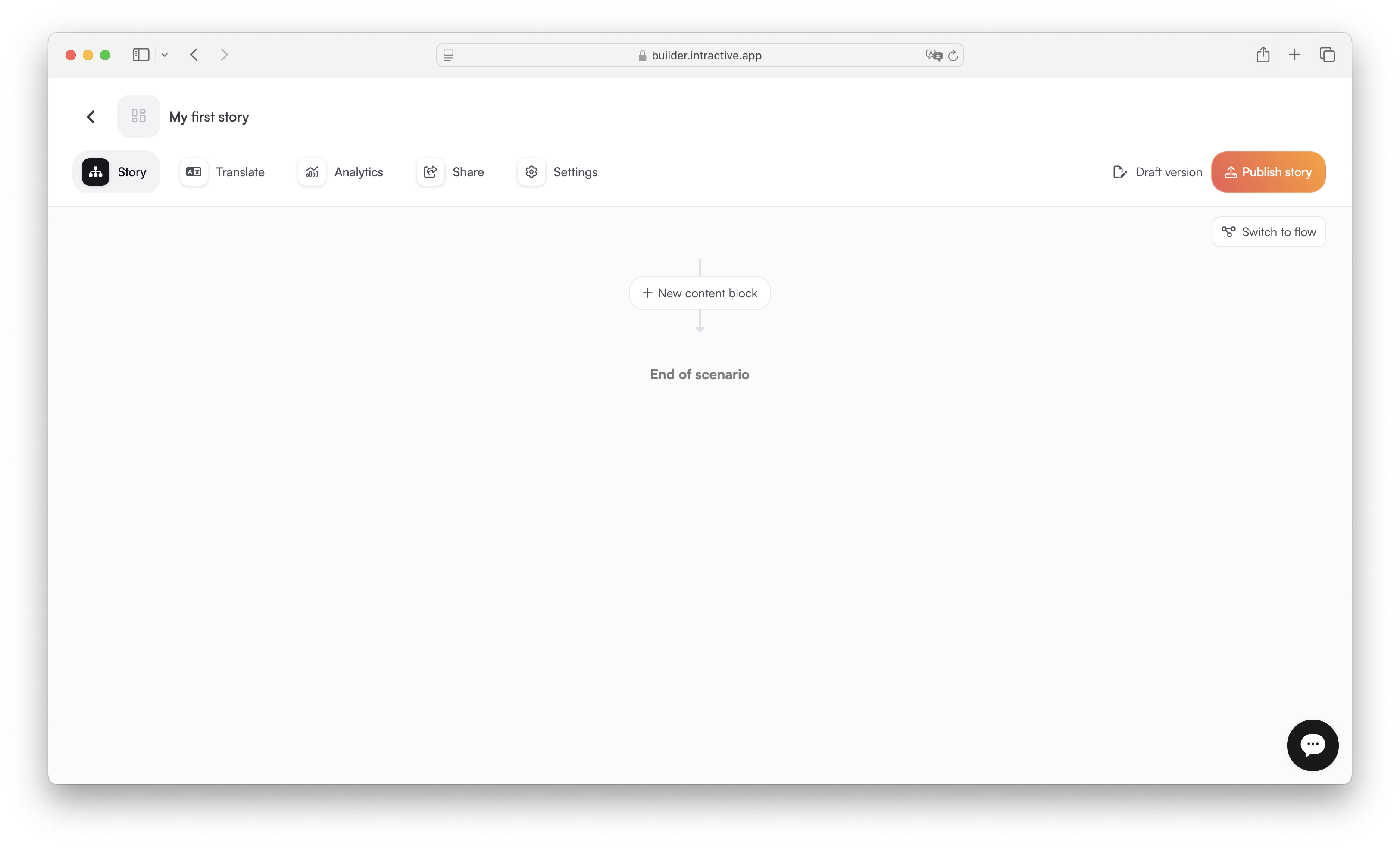 Let's create your first story using different types of scenes. In the beginning, you'll see a blank canvas, such as the one below: ⬇️