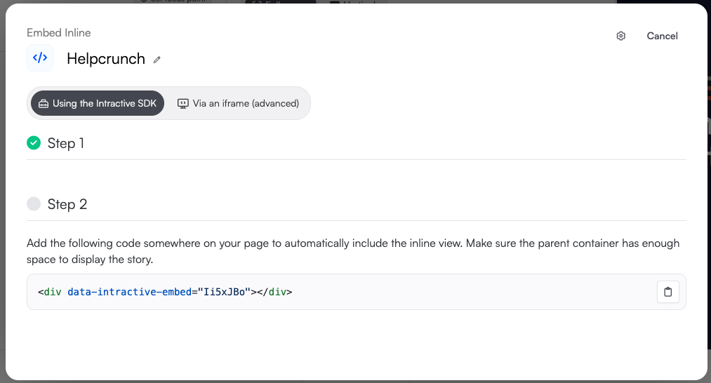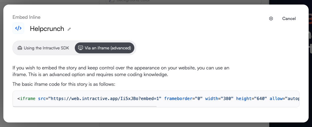 Go to your story in the Builder, hit Share, choose Embed popup, and there it is - your very own SDK code. Copy, paste, done.